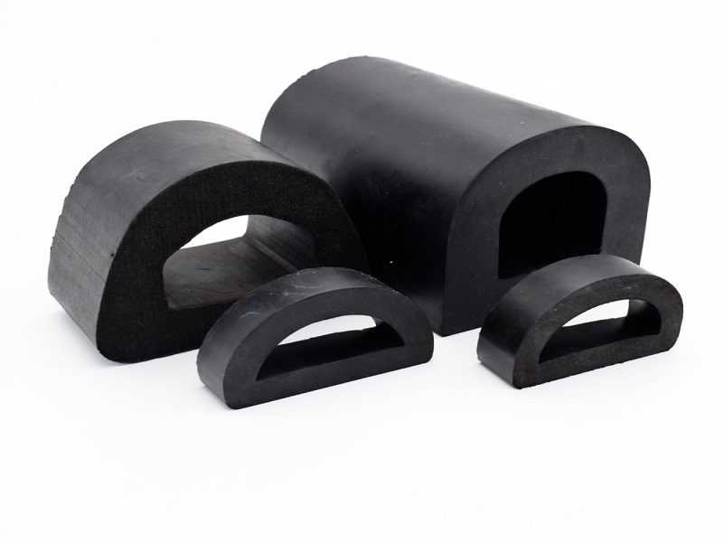 A D-profilú gumiütközőket az ütések elnyelésére és védelmére tervezték, és jellemzően 75° ± 5° NR/SBR keverékből gyártják.